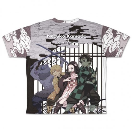 禰豆子のグラフィックTシャツは、背面にはかまぼこ隊の3人が描かれています。