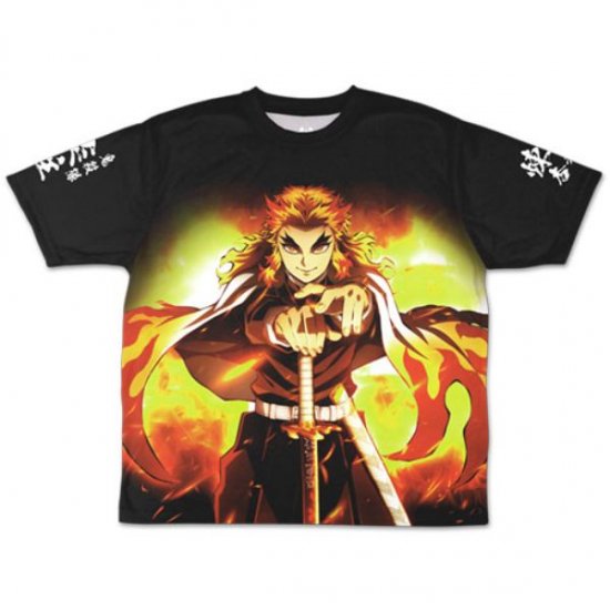 映画で日本・世界の人々の魂を震わせた炎柱・煉獄さんのグラフィックTシャツです。日輪刀を構えるいさましい姿に、映画の感動がよみがえります。