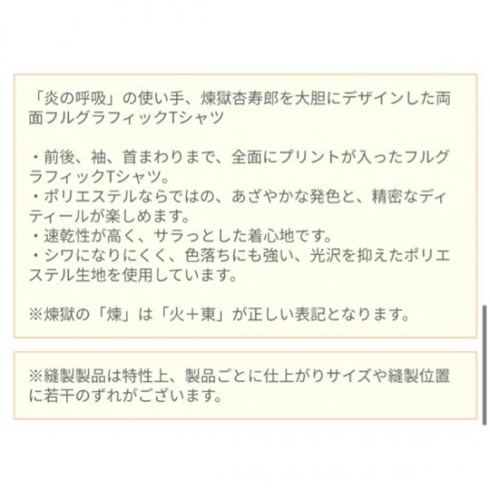 Tシャツのグラフィックは両面になっていて、前面は戦闘の士気を高める態勢の煉獄さんがプリントされています。