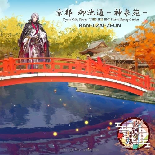 第1弾「御池通(おいけどおり)」は、6月10日に発売された小説「~はんなり京都~ お通り男史 浄化古伝」のエピソードにちなみ、祇園祭発祥の地・神泉苑を舞台にした動画です。神泉苑の池にかかる朱塗りの法成橋に佇む通神・御池の色鮮やかなループアニメーションに、神泉苑で録音したリアルな音とピアノ・ドラムの演奏を組み合わせ、『100%生録音』にこだわった癒しの楽曲をお届けします。