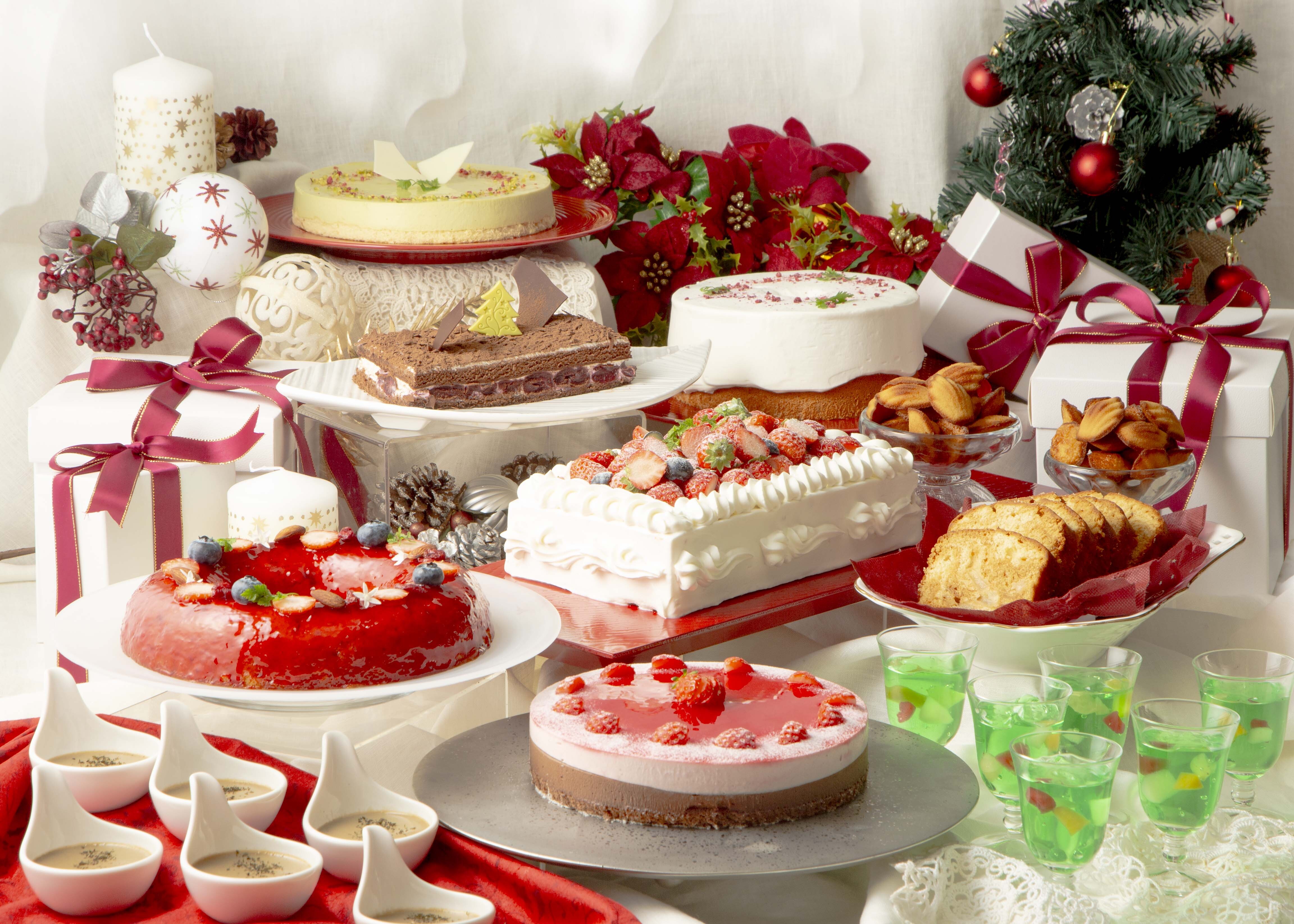 提供メニュー:いちごのショートケーキ、サンタクロースからのプレゼント~真っ赤なエンゼル、ホワイトクリスマス~星空から降り注ぐ雪のシフォンケーキ、トナカイが住む森~フォレノワール、煌めくクリスマスツリー~ピスタチオのレアチーズケーキ、スノードームの世界~苺とチョコのムース、カラメルポワールのパウンドケーキ、ミルクティープリン、メロンソーダゼリー、メープルマドレーヌ