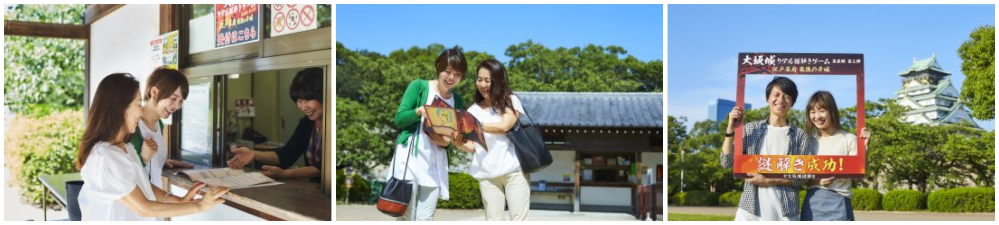 チケットサイト「イープラス」での購入または、現地受付場所での購入が可能です。事前にチケットサイト「イープラス」でチケットを購入する場合は、コンビニで発券し、発券されたチケットを西の丸庭園の受付に提出し「謎解きキット」と引き換えます。当日に現地で購入する場合は、西の丸庭園の受付にて購入し「謎解きキット」を受け取ります。ストーリーに沿って、大阪城公園内や西の丸庭園内に設置された謎に挑戦します。最後の謎を解くとクリアとなり、物語の結末を読むことができます。キットには大阪城公園内にある「ミライザ大阪城」で使用できるクーポンが付いているので、ゲームや観光の合間に食事やショッピングを楽しむこともできます。また、音声ガイドを聞きながら街歩きを楽しむことができる「音声周遊アプリ“きくタビ”」の対象地域となっているので、本イベントと合わせて利用すると観光や楽しみの幅が広がります。