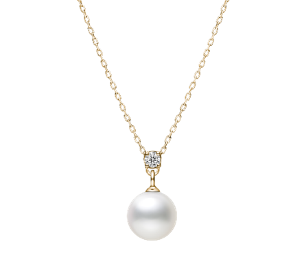 天然の白色と美しい丸みを帯びたパールに、メレダイヤモンドの煌めきがやさしく降り注ぐデザイン。やわらかな月の光を思わせるほんのりと上品な輝きが、大切な記念日の想いにやさしく寄り添います。洗練されたシンプルな装いで幅広いシーンで活躍するネックレスです。