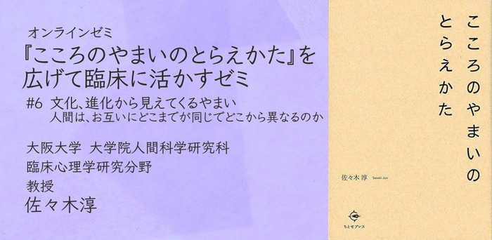 オンラインセミナー『こころのやまいのとらえかた』を広げて臨床に活かすゼミ 第6回「文化、進化から見えてくるやまい」を開催します
