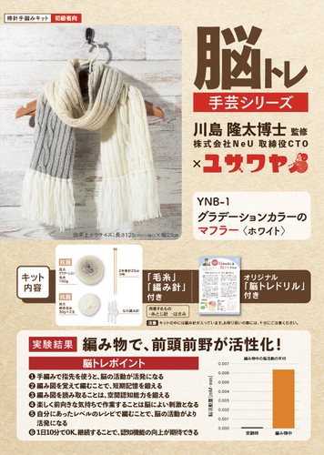 創業67年、日本最大級の手芸用品・生地・ホビー材料の大型専門店『ユザワヤ』を展開しているユザワヤ商事株式会社(所在地:東京都大田区、代表取締役社長:畑中 喜雄)は、東北大学+日立ハイテクによる脳科学カンパニー株式会社NeUと協力し、「脳トレ」の開発者、川島隆太博士(株式会社NeU 取締役CTO)監修のもと、認知機能の向上に役立つ「脳トレ手芸シリーズ第2弾 編み物キット」を、2021年10月1日(金)から販売開始いたします。