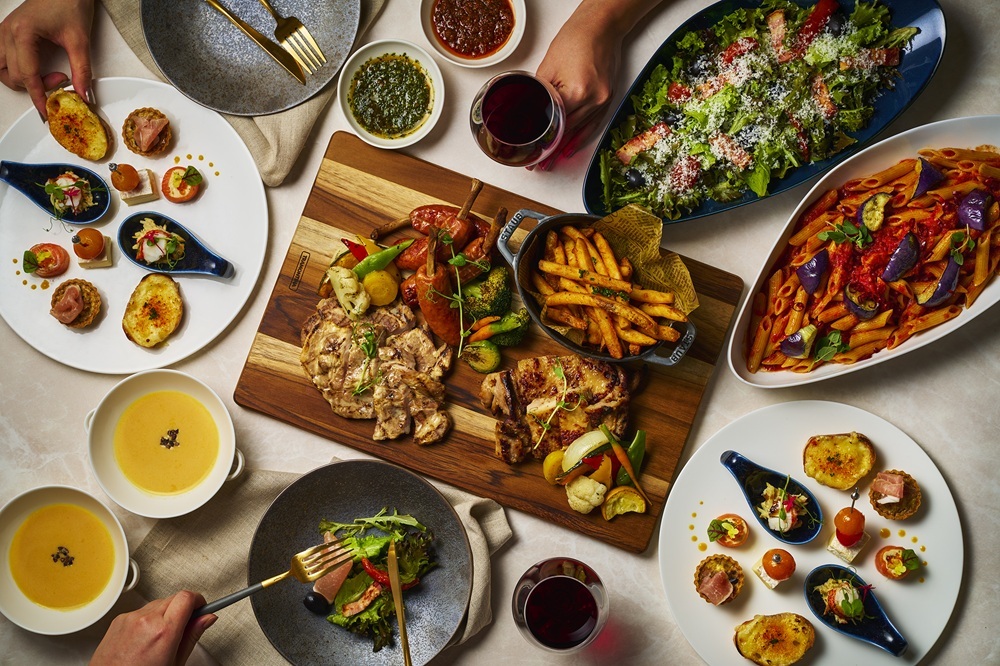 また「Cafe&Bar LIBER」では「コモンテーブルプレート」を期間限定の特別価格で販売。大皿に盛りつけられた料理をシェアして楽しめるスタイルで、ご家族やご友人とのお食事におすすめ。食事の始まりを彩る前菜から、石窯で丁寧に焼き上げられる「チキンの塩麹マリネと神戸ポークのロースト」まで、シェフこだわりの本格的な味わいをご堪能いただけます。