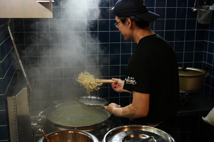 滑らかさとコシのバランスを追求し、噛んだ瞬間にほのかに粉の風味が広がる自家製麺を採用。