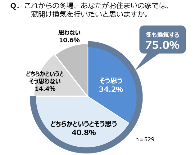 「冬場も窓開け換気をしたい」75.0%、冬場の換気を妨げる2大要因は「寒さ」と「電気代」
