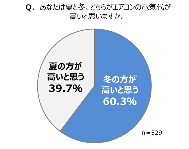 「冬の方がエアコンの電気代は高い」60.3%、冬場はエアコンにかかる負荷が大きい