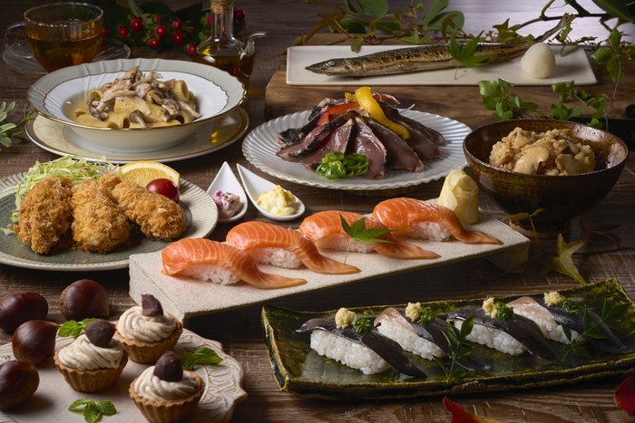 9月1日(月)〜11月30日(日)の期間限定で、秋フェアメニューが登場。新鮮な秋刀魚握りや、脂の乗ったキングサーモン握り、香ばしいかつおたたきといった海の幸をはじめ、松茸ごはんや朝食には炭火でじっくり焼き上げた秋刀魚一本焼きをご用意。この季節ならではの旬の味覚を、心ゆくまでお楽しみいただけます。