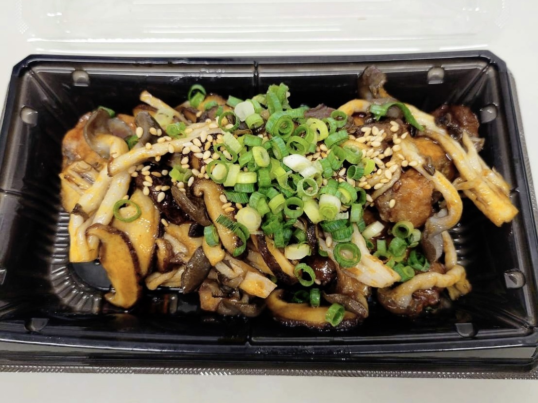 椎茸、しめじ等のきのこと甘辛いたれで和えた秋を満喫できるお惣菜です。