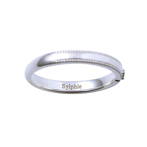 シルフィエットをイメージしたカラーストーンをセットし、内側には愛称を刻印しました。ユニセックスに身につけられるデザインです。