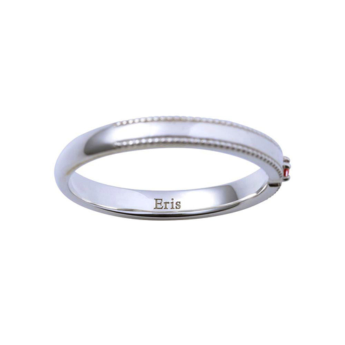 エリスをイメージしたカラーストーンをセットし、内側には名前を刻印しました。ユニセックスに身につけられるデザインです。