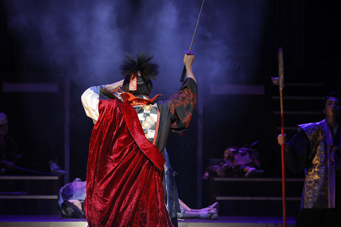 「最終章、第5弾となりました。延期もありましたが、このように開催出来てとてもうれしく思っています。僕はストーリーテーラーも務めます。初演作からWサイドストーリーを続けてきたので、5作目だけど10作品分やってるのと同じなんです!この両サイドの演出、魅せ方は『信長の野望』ならでは。見方を変えると全然違って見えて面白いんです!!今日は五輪の開会式ですが、『信長の野望』最終章は、オリンピック競技です!和風フェンシング、射的、フットボールショーじゃないですがハーフタイムショーがありますよ!是非みてください!!」