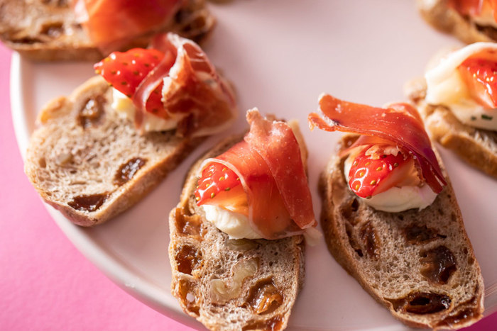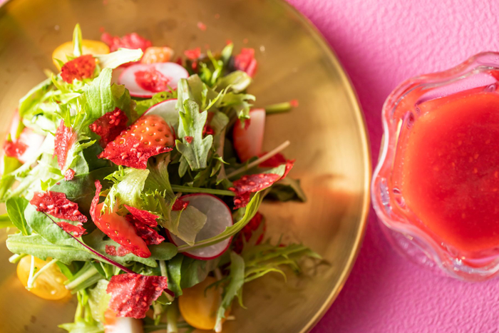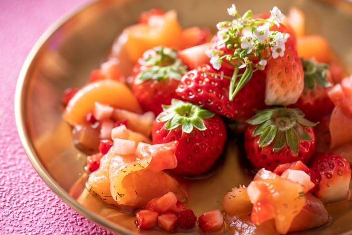 【フード(冷製3種)】自家製サーモンマリネ クローヴ香るラヴィコットソース/ストロベリーカラフルサラダ ベリーのヴィネグレット/いちごと生ハムのカナッペ 爽やかなミントクリームで