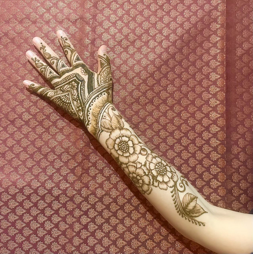 ヘナという薬草のペーストで描くナチュラルなアートなのでお肌に優しく、