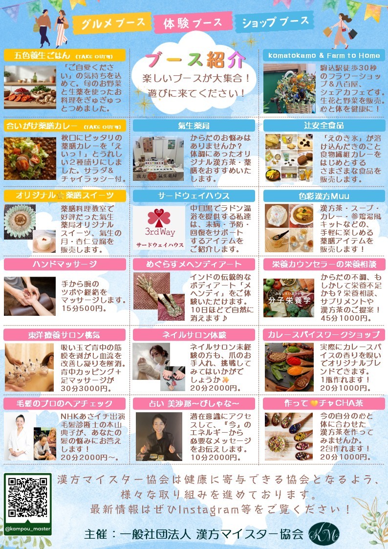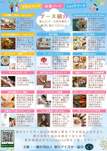 事前予約 :https://reserva.be/kampoumaster (体験ブース)