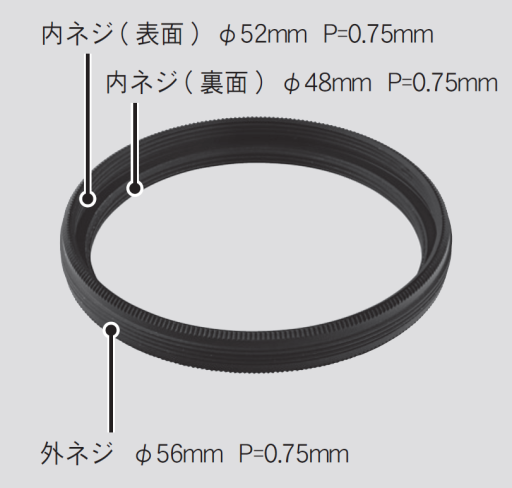 内ネジ: M48(φ48mm P=0.75mm)、M52(φ52mm P=0.75mm)