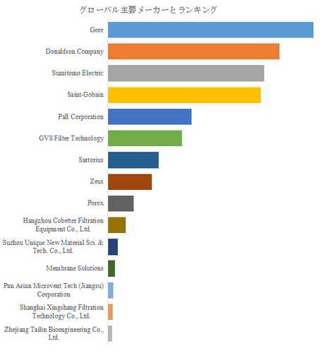 LP Informationのトップ企業研究センターによると、疎水性膜市場は、Gore、Donaldson Company、Sumitomo Electric、Saint-Gobain、Pall Corporation、GVS Filter Technology、Zeus、Sartorius、Porex、Hangzhou Cobetter Filtration Equipmentなどのグローバル企業が中心である。2024年には、トップ5企業が売上ベースで約55.0%、トップ10企業で約69.0%の市場シェアを占めており、市場は高い集中度を示している。主要企業は膜技術の高度化と製品差別化を推進し、多様な産業用途における信頼性確保を図っている。