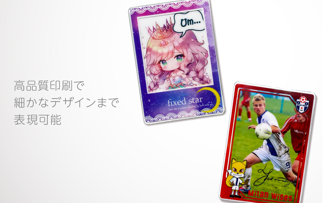 オリジナル スマホケース フォトフレームは、美しい光沢のあるクリア素材に高品質のUVインクジェットフルカラー印刷でオリジナルデザインを印刷いたします。UVインクジェットフルカラー印刷はインクを直接吹きかけて印刷するため、写真やグラデーションなどの繊細なデザインも鮮明にプリントできるのが特徴です。美麗にプリントされたデザインのフレームとカードが重なり合うことで立体感が生まれ、より美しく仕上がるオリジナルグッズです。
