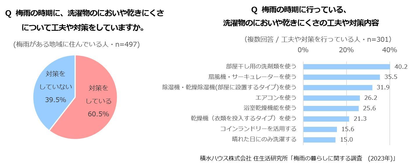 ・引用元が「積水ハウス株式会社 住生活研究所」による調査である旨と、引用元調査「梅雨の暮らしに関する調査(2023年)」の記載をお願いします。