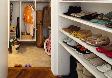 (4) 梅雨に大活躍の玄関土間と収納:傘を直置きしている人も多いようですが、玄関土間に雨の日用の傘立てを置けば、濡れた傘がまとまり、玄関にある他の物を濡らさずに済みます。乾いたら傘立てと一緒に玄関収納にしまえば、雨の日以外の土間もすっきり。玄関土間にハンガーラックを置けば、濡れた上着やレインコートも干せますよ。また、梅雨以外も、花粉を室内に持ち込まない等の効果も発揮します。これから住まいを考える方は、乾かす、しまう場所も含めた土間や収納を検討してみてくださいね。