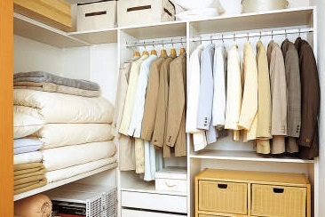(3) 風通しのよい収納を:朝、湿気を含んだ布団を押し入れにしまう際は、収納内部のカビに注意。収納の風通しを良くすることが対策の一つです。押し入れの左右の扉の両端を少しずつ開け、風の通り道をつくりましょう。クローゼットなど衣類の収納は、詰め込みすぎずに風が流れる隙間を残しておくこともポイントです。加えて、カビや結露の発生を抑える調湿建材を収納の壁に用いればより安心です。