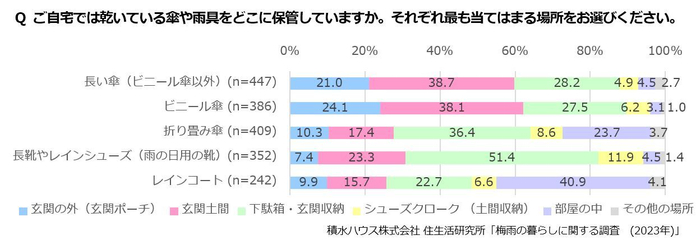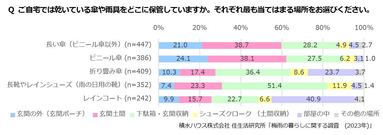 ・濡れた傘・雨靴を「玄関土間」に置く人が約4割、約3割が濡れた雨靴をそのまま下駄箱・玄関収納に