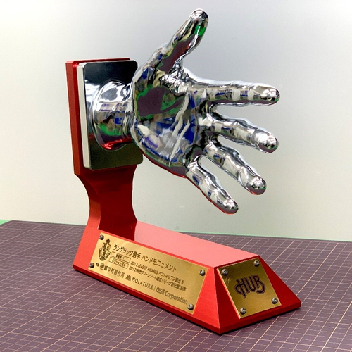 「大変光栄です。寄贈してくださる株式会社中村製作所と展示してくださるHUBの皆さまに感謝します。驚くほど精巧につくられた私の左手の原寸大のモニュメントです。