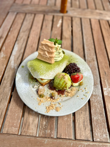 三浦の赤たまごを使用したスフレ生地に、足柄茶のスフレソースと抹茶アイスがマッチ。ふわっと軽やかな口どけと上品な茶の風味を楽しめる、春限定の特別メニューです。