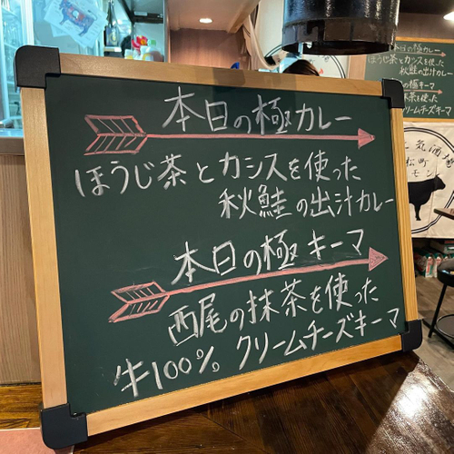初日のメニューはほうじ茶、カシス、秋鮭、西尾の抹茶、クリームチーズなど一見、カレーとは何の関係もない食材を極理の味にまとめ上げました。