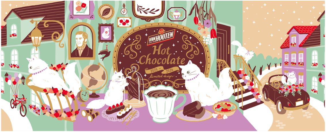 片岡物産株式会社(本社:東京都港区新橋)は、世界で愛されるココア ブランド <バンホーテン>から「ホット チョコレート 2025-2026 リミテッドデザイン缶(150g)」を、2025年10月21日(火)より順次、数量限定で発売いたします。