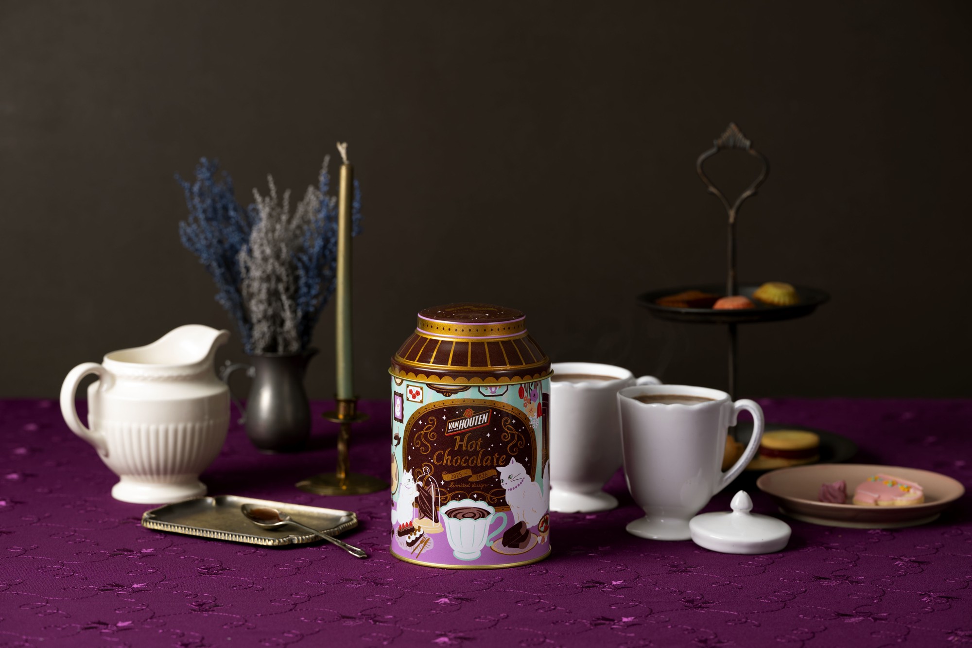白猫がモチーフのクラシカルなデザイン缶で、濃厚なホット チョコレートを楽しもう