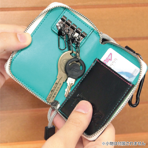 お部屋のカギはもちろんのこと、スマートキーも収納可能なツーポケットのマルチキーケース。シンプルなカラーリングとデザインでバックパックとの相性も抜群です。