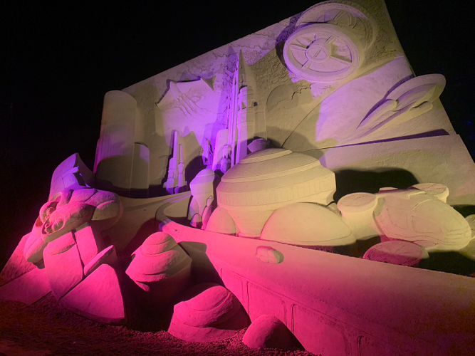 昼は、精巧な砂像をお楽しみいただき、夜は、昼とは違った幻想的な雰囲気をお楽しみいただけます。