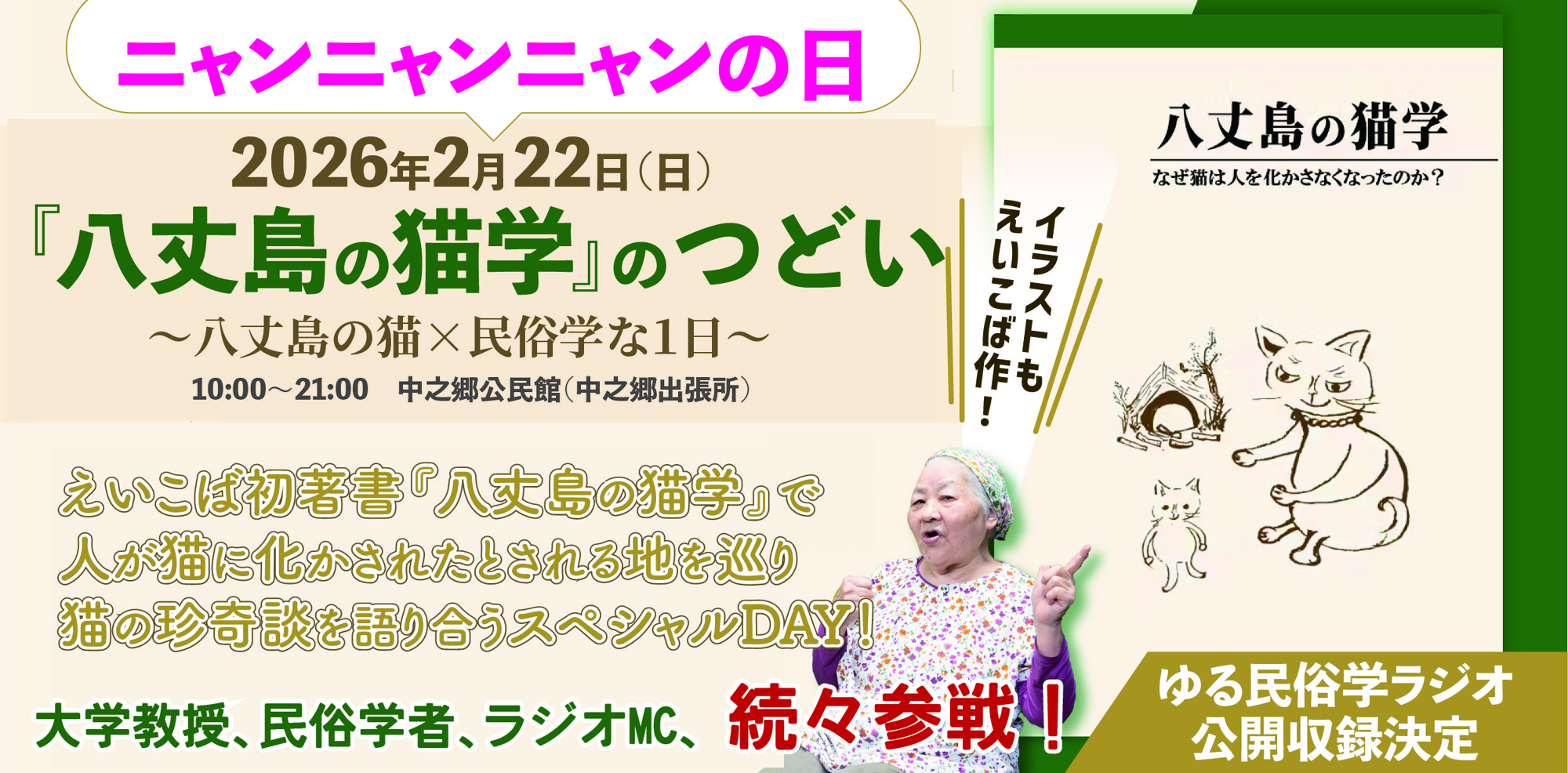 2026年2月22日(日)の「ニャンニャンニャンの日(猫の日)」に、『八丈島の猫学』のつどいというイベントを開催します!