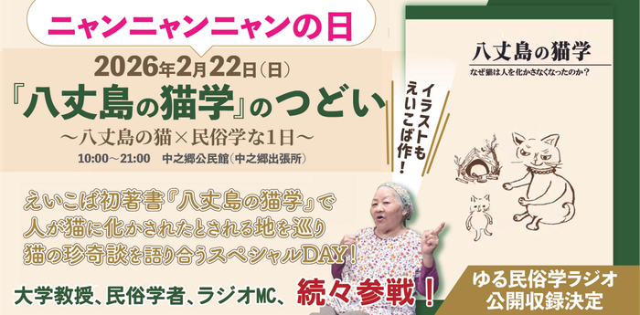 その後、多くの方に関心を寄せていただいておりますが、この度、全国的に猫に関するイベントが展開する猫の日(2月22日)に合わせ、八丈島で、「八丈島の猫学のつどい」と題して、猫×民俗学なスペシャルイベントを開催します!