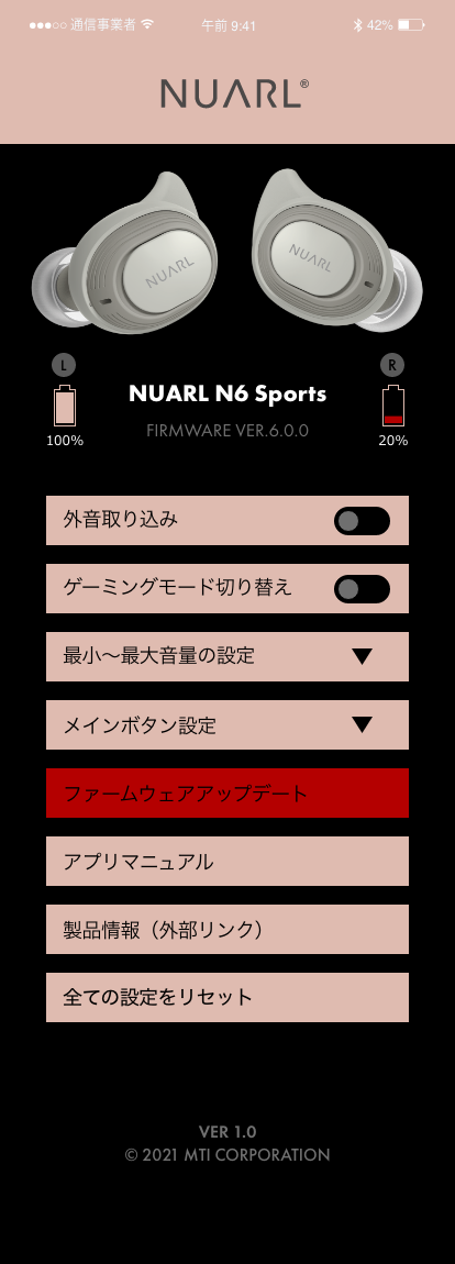 エム・ティ・アイ株式会社(所在地:東京都豊島区、代表取締役:張 慶傑)は、当社のオリジナルブランド「NUARL(ヌアール)」から、完全ワイヤレスイヤホン「N6 sports WATERPROOF TRULY WIRELESS STEREO EARBUDS(以下「N6 sports」)」用スマートフォンアプリ「N6 Connect」をApp StoreならびにGoogle Play Storeにて2021年4月中旬より無償配布いたします。