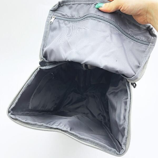 中はこのようにシンプルな作りです。変に仕切りがないので、かさばる荷物でも出し入れしやすいですよ。内容量は30Lで、だいたい1〜2泊分の荷物が入ります。