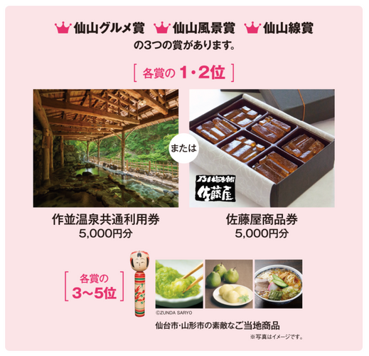 仙台市・山形市は協同で、仙山エリア(仙台市・山形市)のおいしいグルメや素敵な風景・仙山線の写真をInstagramで投稿してプレゼントが当たる「Instagramフォトコンテスト」を開催。