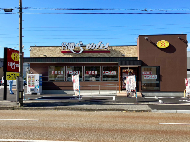 株式会社ハチバン(本社:石川県金沢市、代表取締役社長 長丸昌功)は、11月10日(金)に「8番らーめん金沢工大前店」を新たにオープンいたします。