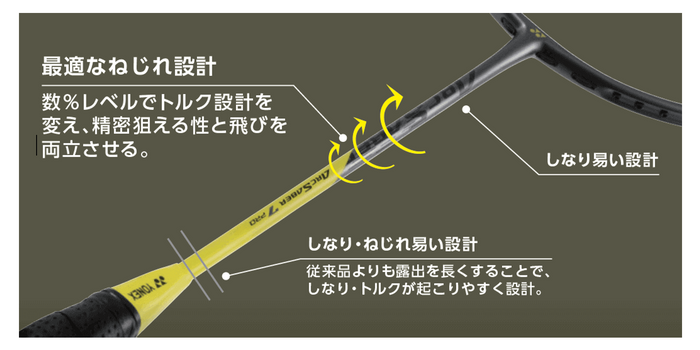 中上級者に最適なしなり、トルクを追求した新設計 くわえ込む球持ちで精密コントロール性能を高めたバドミントンラケット「ARCSABER(アークセイバー) 7 PRO」 2022年8月下旬より発売