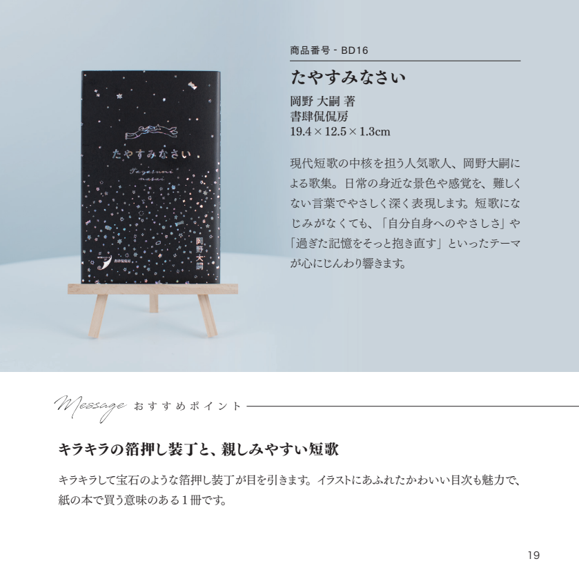 また、クリスマスやバレンタインといったギフトシーンでは、相手の好みを外さないよう無難な定番ギフトを選びがちで特別感がありながら外さない贈り物が求められています。こうした背景から、図版やイラストが豊富で直感的に楽しめるビジュアル書籍や、短時間で読めるエッセイ・短歌など“軽やかに味わえる本”へのニーズが上昇。