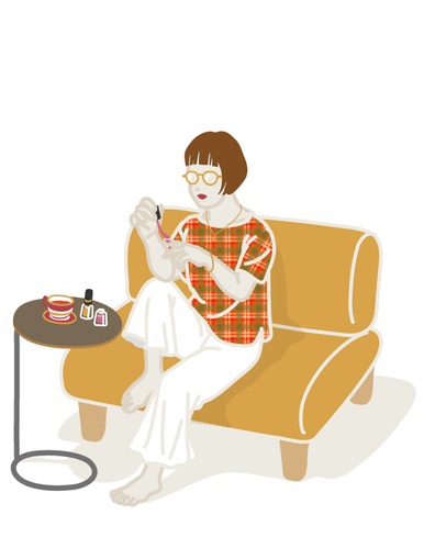 マニキュアを塗って気分転換するのが彼女のルーティーン。フレームデザインはスタイリッシュなクラウンパント型。
