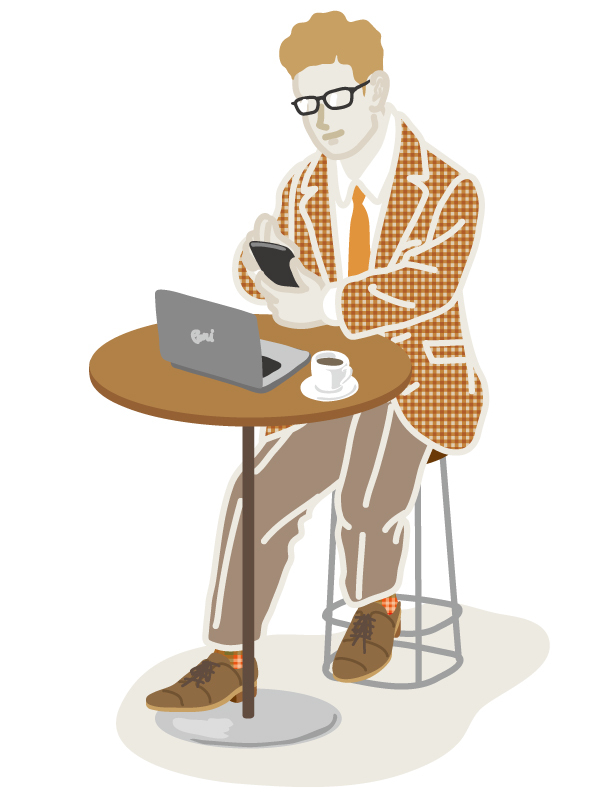 カフェで仕事をやっつけています。フレームデザインはフォーマルなスタイルにも合う、シンプルなスクエア型。