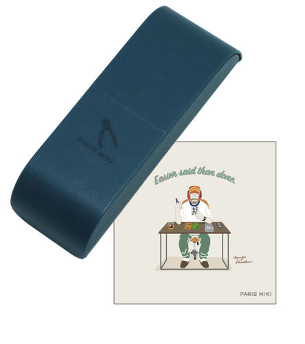 リーディンググラスは掛け外しが多く、無造作に置きっぱなしになりがちなため、メガネスタンドとしても使える機能を持ったメガネケースを付属させました。持ち運びはもちろん、メガネの置き場所になってくれる使い勝手の良いケースです。