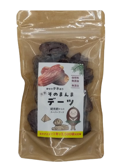 太陽からの贈り物「そのまんまデーツ」は、女性やお子さん達が、おやつ感覚で召し上がっていただけるように商品設計された完熟ドライフルーツです。