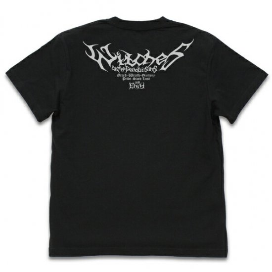 まずは1枚目。大罪の魔女6人が前面にデザインされた、カッコよさが際立つTシャツです。ブラックの色合いは、クールに着こなしたい方にピッタリ!