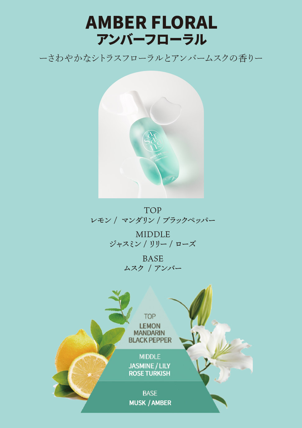『さわやかなシトラスフローラルとアンバームスク香り』