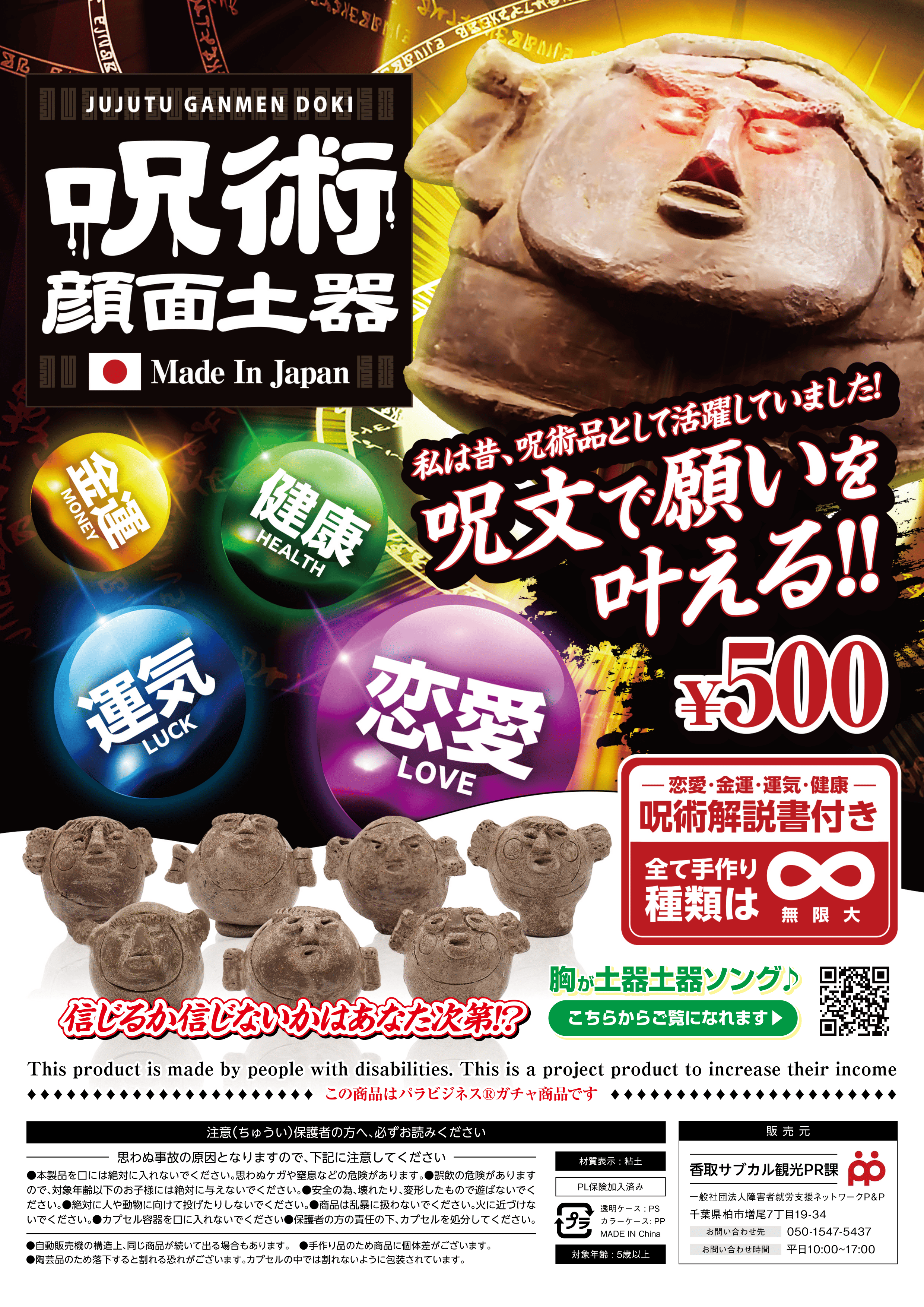 パラビジネスプロデュース事業を行う一般社団法人障害者就労支援ネットワークP&P(所在地:千葉県柏市/代表理事:奥岳 洋子/以下 当法人)は、2025年3月20日、2024年に開催されたビジネスコンテスト『佐原のあしたPROJECT※1』で受賞した地域振興型プロジェクトを始動。第一弾商品として、千葉県香取市で発掘された香炉形顔面付土器の手作りデフォルメフィギュアのカプセルトイの販売が開始しました。